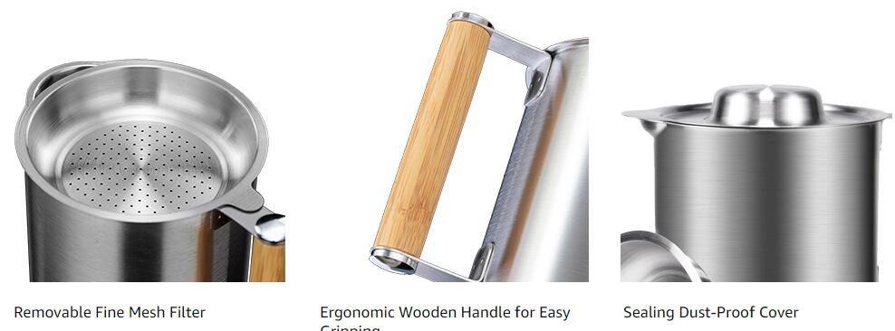 - 【Durable Material】 --- Bacon grease container machine body made of high quality stainless with wooden handle . which can resist rust and corrosion. The pot body is thick and not easy to break, and the service life is longer. The metal stainless steel fine mesh filter helps us separate food from grease, and the sturdy construction makes filtration safer and more hygienic.