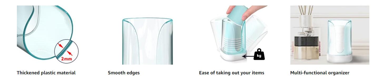 • ❤【Non-slip and Durable】The bottom of the container comes with four non-slip rubber feet so that the cups don't move around when you remove them. It has no parts that can rust, so it won't leave rust stains on the counter either. You don't have to worry about using it in a humid environment where it can harm your bathroom countertop.
