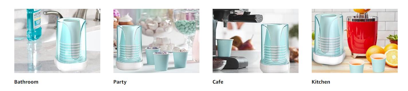 • ❤【Tiny and Functional】This multi-functional organizer is small and compact, doesn't take up a lot of space. Each cup holder comes with 8 regular size 3oz disposable cups, which can hold 25-30 cups at a time, and you can choose any different color or pattern to refill. In addition to the paper cups, it is also perfect for holding makeup pads for cleansing your face/removing makeup.