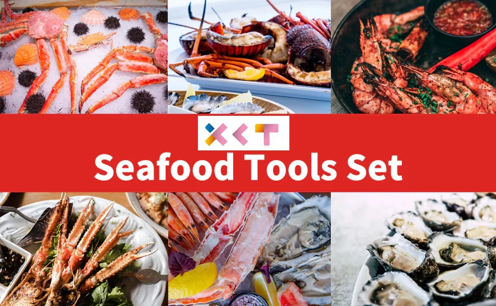 • Professional Seafood Tools Set includes 4 zinc alloy crab leg crackers, 4 ceramic Butter Warmers, 4 stainless steel crab leg forks/picks, 4 Food-Grade plastic lobster shellers, 1 stainless steel seafood scissors, 14 Tealight Candles and 2 Crab Grabber.