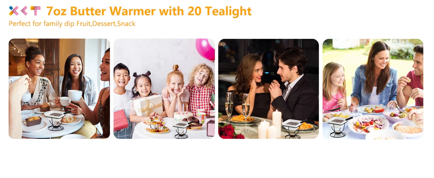 - Standard Tealight Candles Easy to Replace: This Butter Warmer Set with 20pcs standard tealight,you can buy in your local store ,very convenient. We also sugeest that stir slightly while the butter (or chocolate)Warmer is boiling and stir regularly to prevent scorching. If necessary,pre-melt the butter then pour into the pot.