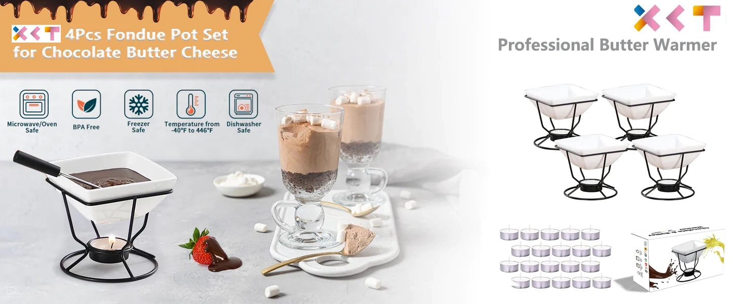 - Lead Free Ceramic Material for Safe Food Contact: This chocolate fondue is made of high-quality, lead free,durable and high-temperature resistant ceramics.Unlike plastics, ceramics is an elegant, environmentally friendly and versatile material. Never worry about harmful toxins leaching into your food.Pots are oven safe, dishwasher safe, microwave safe, freezer safe and easy to clean.Clean up was a snap (metal stand washed by hand).