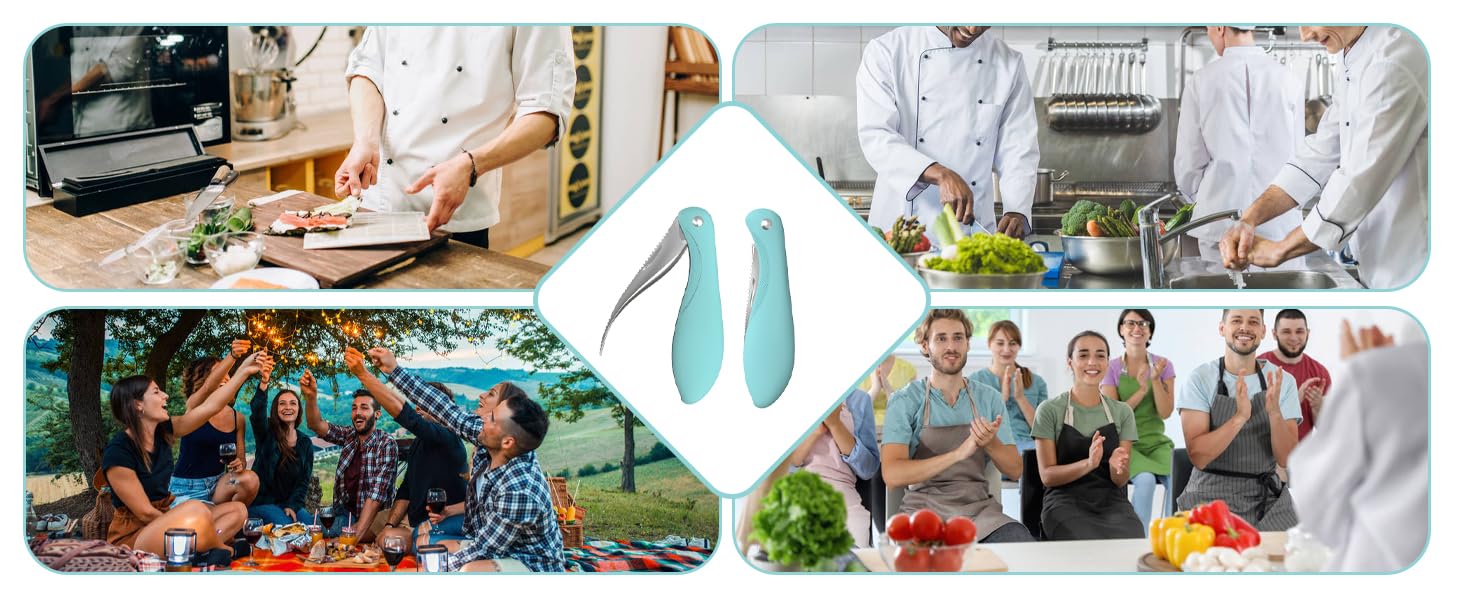 - 【Material safety】:The blades of shrimp knive is serrated and made of sturdy stainless steel.